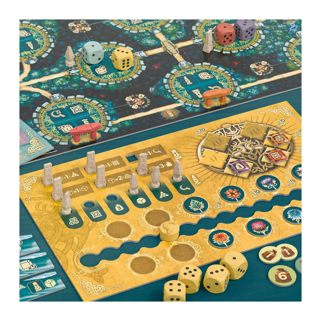 Vous incarnez des druides énigmatiques et de mystérieuses prêtresses remontant à des temps immémoriaux. Vous empruntez des chemins sinueux à travers une forêt mystique qui vous mènent à d'impressionnants sanctuaires. À vous de répartir astucieusement votre énergie entre nourriture et dés. Essayez de gagner le maximum de prestige, à l'aide des nombreuses actions qui s'offrent à vous sur chacun des sanctuaires. Que vous érigiez de superbes stèles et menhirs, prépariez de puissantes potions magiques, rejoigniez les imposants dolmens ou consultiez l'Oracle sacré, vous tirerez des bénéfices de chaque décision, contribuant ainsi à accroître votre réputation. Utilisez vos dés de manière astucieuse : vous les lancez tous dès le début de la partie, vous savez donc exactement ce que vous pourrez réaliser au cours de la partie.