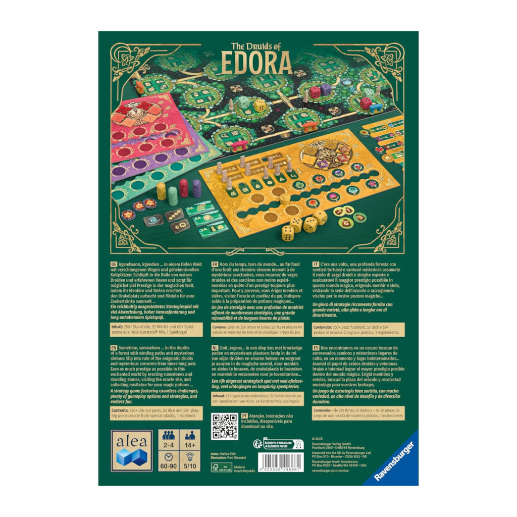 Hors du temps, hors du monde… au fin fond d’une forêt aux chemins sinueux menant à de mystérieux sanctuaires, vous incarnez de sages druides et des sorcières non moins expérimentées en quête d’un prestige toujours plus important. Pour y parvenir, vous érigez menhirs et stèles, visitez l’oracle et cueillez du gui, indispensable à la préparation de potions magiques…