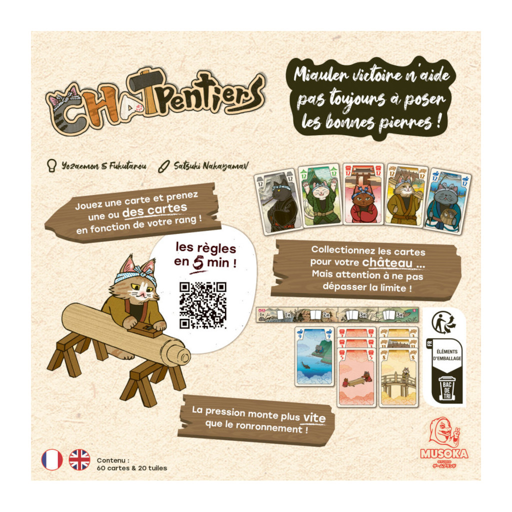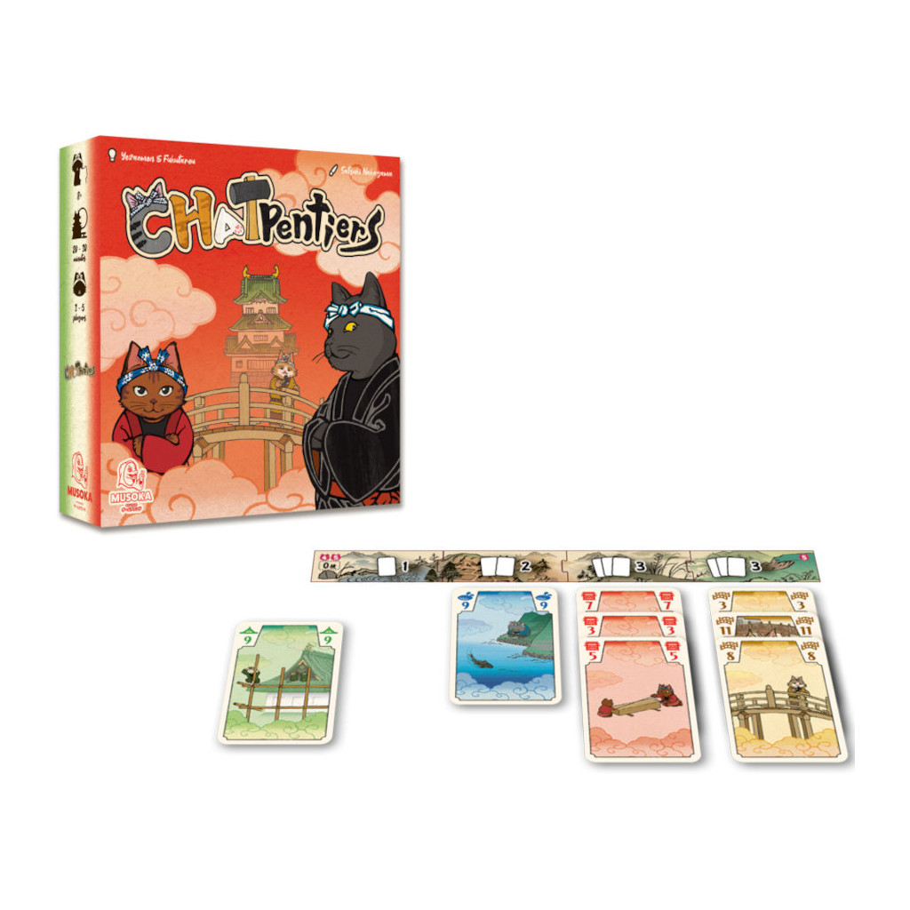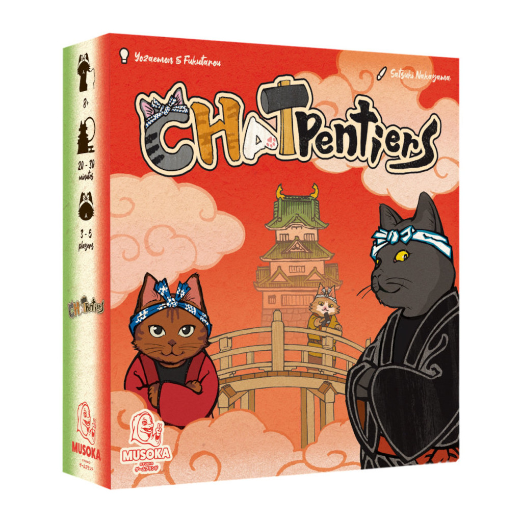 Chatpentiers est un jeu de cartes pour 3 à 5 joueurs, où vous incarnez des chats charpentiers à l’époque Edo au Japon !