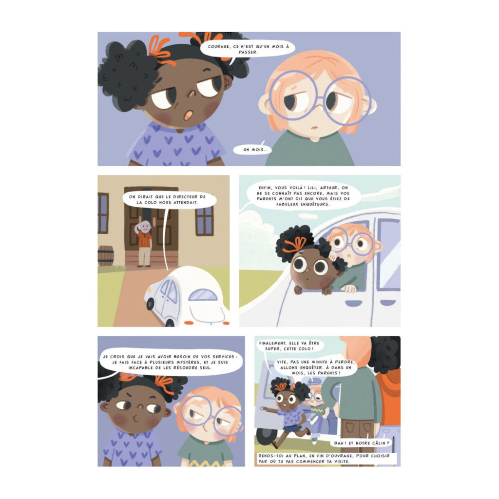 C’est les vacances ! Cette année, Lili et Arthur vont en colonie, dans un camp qui accueille de nombreux enfants. Et pour tout dire, ils n’ont pas vraiment envie d’être là ! Mais quand ils découvrent que des méfaits ont été commis dans le camp, ils sortent leurs loupes : pas de vacances pour le Club Sherlock !