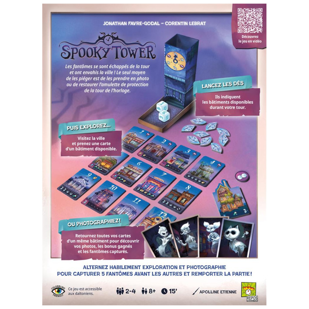 Spooky Tower combine prise de risque, anticipation et décisions tactiques dans une ambiance gentiment effrayante. La tour à dés spectaculaire, les illustrations colorées et le rythme dynamique des parties donnent envie de jouer et rejouer en famille.