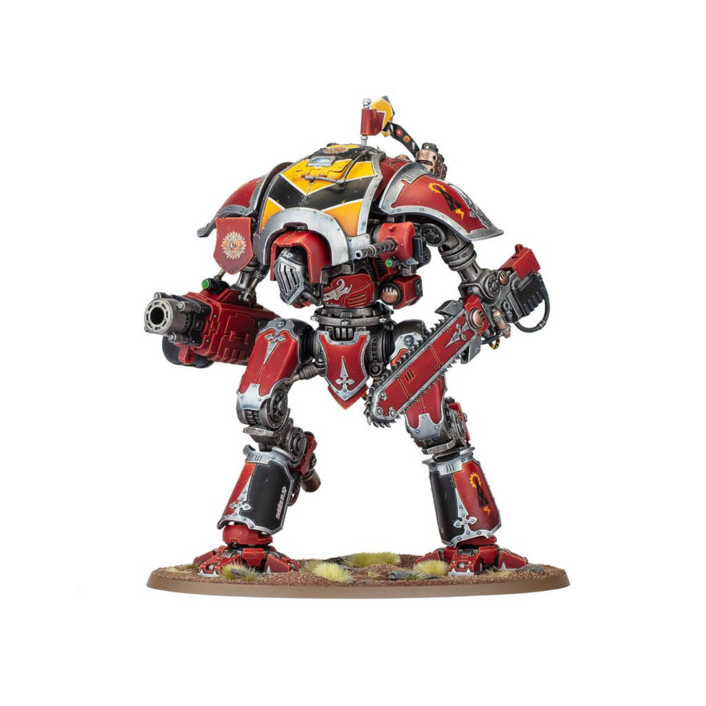 Le Chevalier Destrier est agile et rapide. À l'aide de propulseurs, les pilotes habiles peuvent rendre leurs charges encore plus foudroyantes pour éventrer l'ennemi à coups de lance Choc du Tonnerre ou de tronçonneuse Reaper, avant de moissonner ce qui reste de l'adversaire par des grêles de tirs de canon gatling châtieur ou de munitions explosives lâchées par leur bombarde Frag.Allure Agile et Lame TranchanteCe kit en plastique permet d'assembler un Chevalier Destrier, un marcheur agile pour vos armées de Chevaliers Impériaux dans les parties de Warhammer 40,000. Mesurant 170mm de haut, il est plus grand qu'un Armigère, mais plus petit qu'un Chevalier de classe Questoris. Agile, agressif et parfaitement capable d'engager l'ennemi en combat rapproché, il peut occuper les atouts ennemis pour laisser le reste de votre force avancer sans inquiétude.Nobles AdaptationsLes jambes de la figurine permettent deux poses pleines de détermination, ainsi qu'une option avancée pour les hobbyistes Warhammer les plus expérimentés. Le kit propose trois masques différents, et l'écoutille peut être assemblée fermée ou ouverte, pour révéler l'intérieur détaillé et le pilote. Le Chevalier peut être armé soit d'un canon gatling châtieur, à plusieurs fûts tirant des munitions de gros calibre pour faucher l'infanterie, soit d'une bombarde Frag tirant des obus explosifs. Pour compléter cela, vous trouverez une énorme lance Choc du Tonnerre accélérée par une fusée pour transpercer les blindages renforcés, ou une tronçonneuse Reaper polyvalente pour découper les hordes ou éviscérer les créatures monstrueuses d'un seul coup. Ces armes peuvent être montées sur n'importe lequel des deux bras, ce qui vous permet de personnaliser facilement votre machine de guerre dévastatrice, et la lance Choc du Tonnerre offre deux options d'assemblage.Contient :– 189 éléments en plastique– 1 Socle Ovale Citadel de 150mm sur 95mm– 1 Planche de Décalcos de Bellatus des Chevaliers Impériaux– 1 manuel d'assemblageLa Planche de Décalcos de Bellatus des Chevaliers Impériaux propose 351 décalcos de grande qualité, incluant des symboles des Maisonnées Terryn, Hawkshroud, Cadmus, Taranis et Raven, ainsi que des crânes, des chiffres et plus encore pour décorer votre figurine.