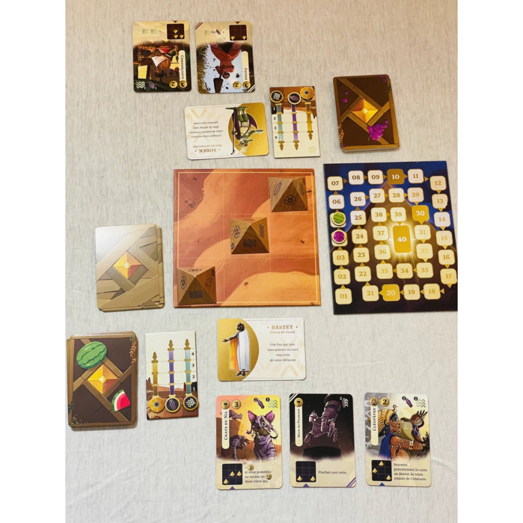 Le cœur du jeu se situe au niveau du plateau central. Le placement des pyramides selon votre point de vue vous permettra d'activer les pouvoirs des créatures et vous fera gagner en prestige pour atteindre votre objectif. Ce placement est essentiel également pour vos adversaires, alors prêtez attention à leur jeu afin de savoir de quelles positions ils ont besoin. Adaptez-vous à leur jeu ou cherchez un moyen d'imposer le vôtre en forçant les positions des pyramides centrales : le choix est entièrement vôtre.