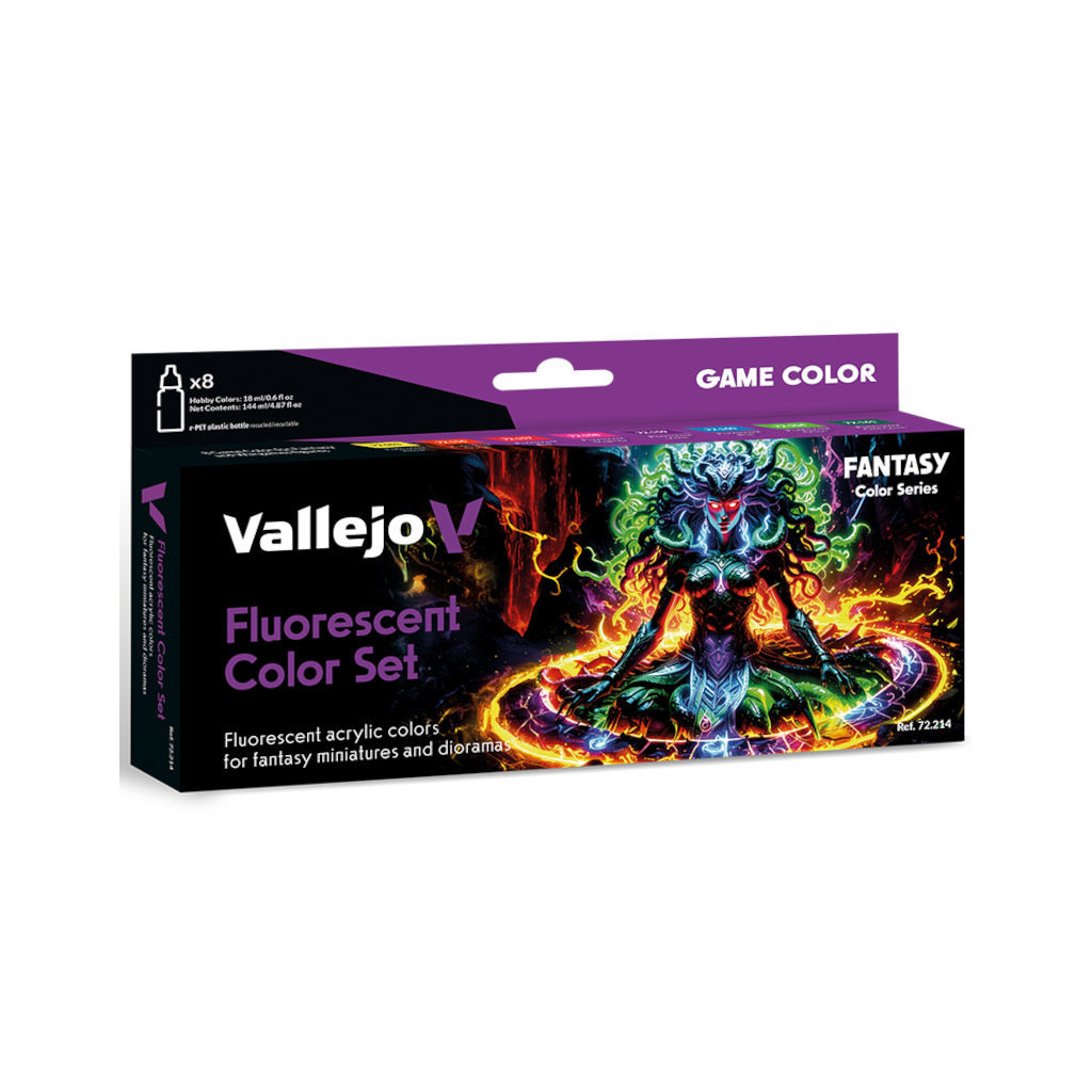 Ce Ce set Game Color Fluorescent de la gamme Vallejo comprend les 8 peintures fluorescentes de la gamme.
