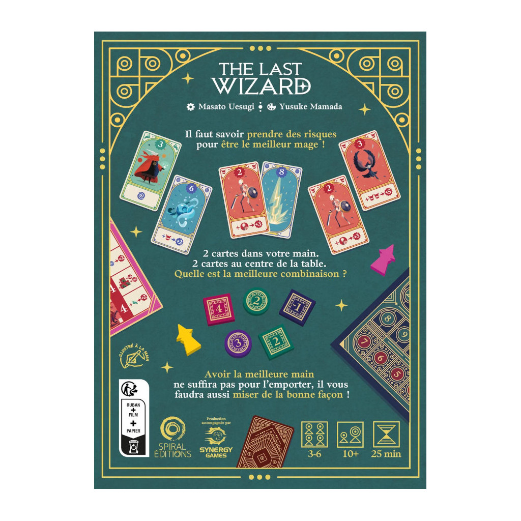 Dans The Last Wizard, vous devrez constituer la meilleure combinaison de 3 cartes parmi celles de votre main et les cartes communes au centre de la table. Évaluez votre main par rapport à celle de vos adversaires, et misez au mieux pour marquer le plus de points ! Ou en perdre le moins possible.