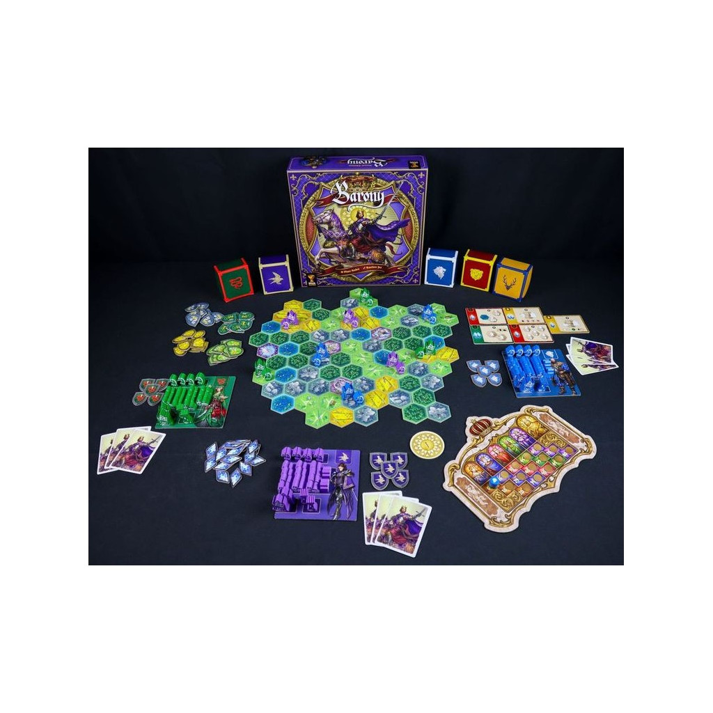 Dans Barony - Edition Royale, les joueurs incarnent des barons ambitieux qui tentent d'étendre leur domination sur le pays ! Qui deviendra le nouveau souverain ?