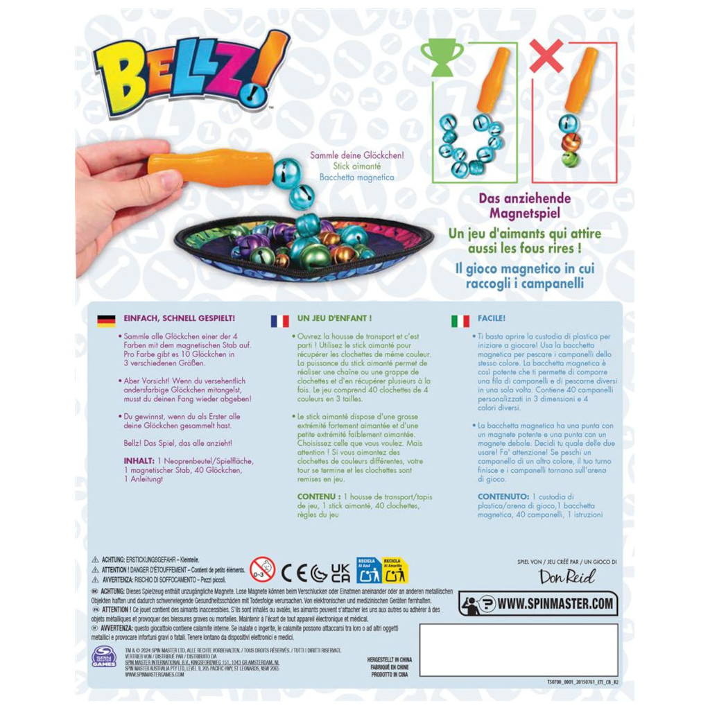 Dans Bellz, capturez les 10 clochettes de votre couleur à l’aide du stick aimanté... mais, soyez vif pour déjouer le magnétisme qui attire les grelots adverses !