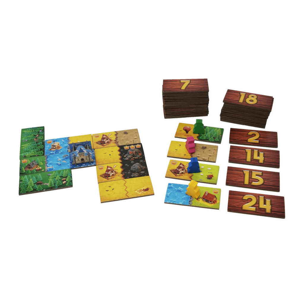 Chaque joueur possède au départ uniquement un château. Il devra construire au fur et à mesure son royaume tout autour du château, en plaçant des tuiles qu'il va récupérer au cours de la partie.