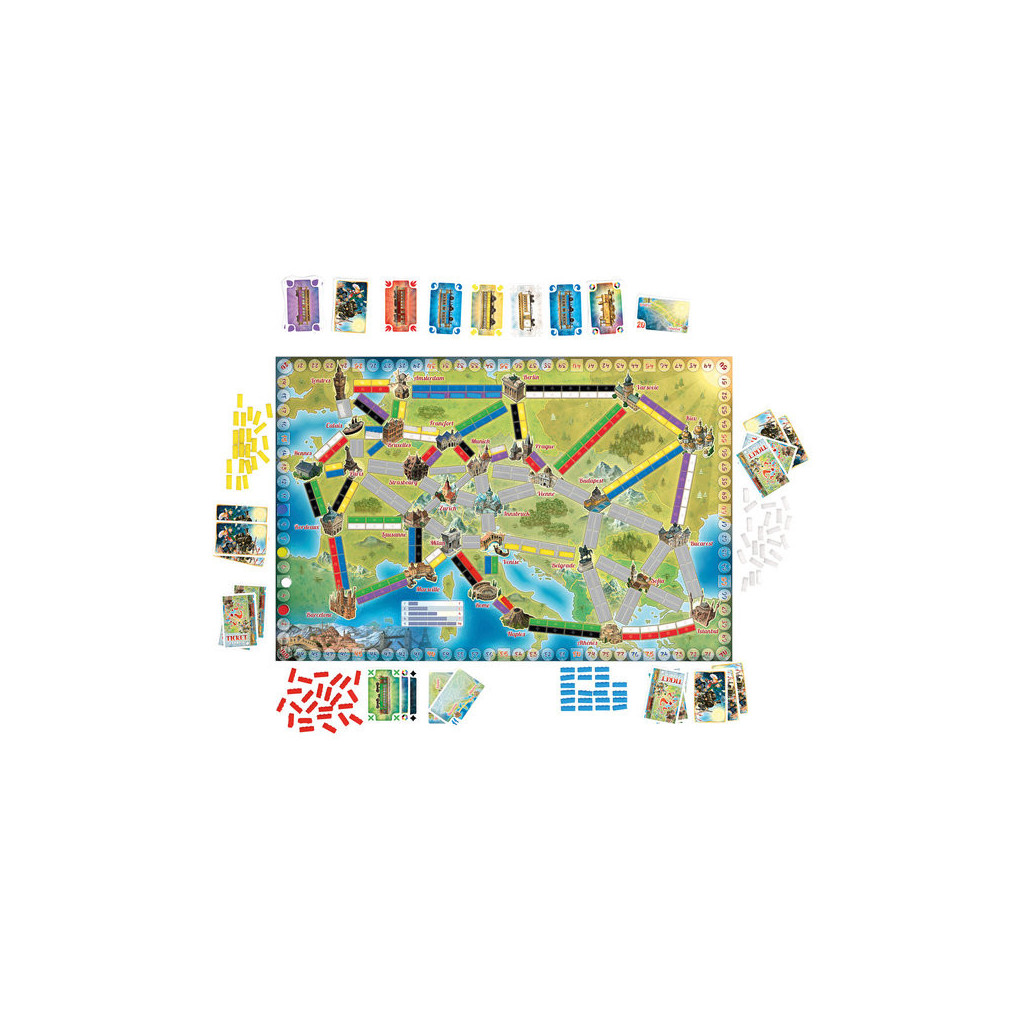 Rapide à mettre en place avec des parties dynamiques, cette édition reprend la carte de l'Europe. Reliez les villes emblématiques telles que Paris, Berlin, Rome, ... en faisant preuve de  réflexion et de stratégie.