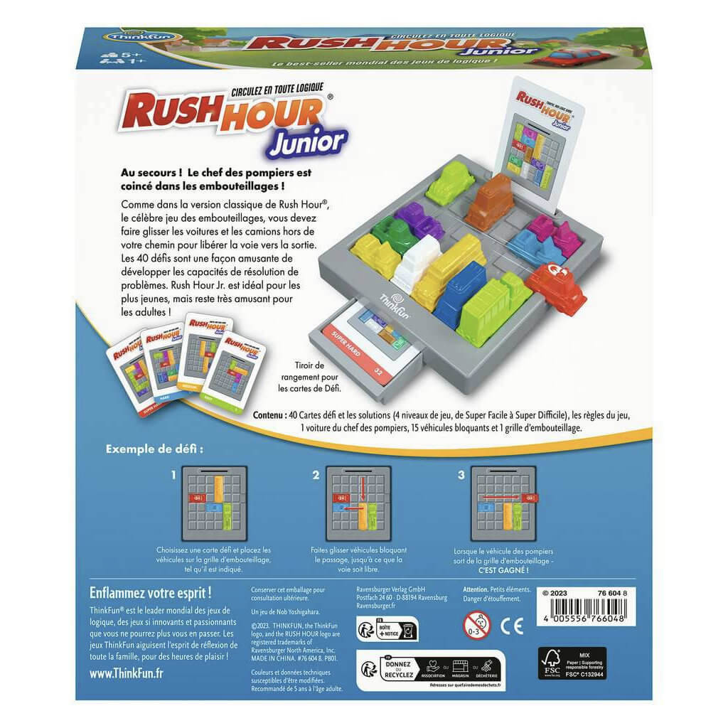 Comme dans Rush Hour, le célèbre jeu des embouteillages, faites glisser les voitures pour dégager la voie et sortir le camion de glaces.40 nouvelles cartes défis et 4 niveaux de difficulté, spécialement conçues pour les enfants à partir de 5 ans.Rush Hour Junior, les points forts : - La version Junior de Rush Hour, le grand classique !- Un casse tête fun et passionnant- Un matériel riche et de qualité