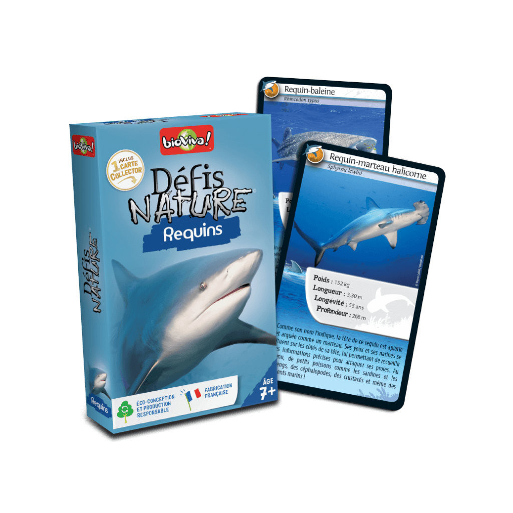 Défis Nature : RequinsDéfis Nature vous emmène à la rencontre des requins les plus étonnants de notre planète. Découvrez les espèces à préserver, puis pariez sur les points forts de vos squales pour collecter toutes les cartes du jeu et remporter la partie. Alors, prêts à relever le défi ?Fabriqué en France / Jeu éco-conçu / Fabrication responsable.Contenu : 37 cartes illustrées - 1 règle du jeu.