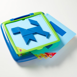 Tangoes Junior. Un jeu de Tangram amusant avec de grandes pièces aimantées et une boîte de rangement très pratique, idéal pour les enfants d’âge préscolaire.