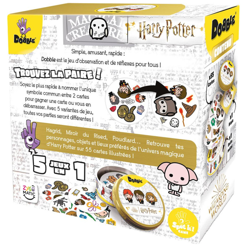 Tous les fans de Dobble et d’Harry Potter en ont rêvé, le voici, le Dobble Harry Potter ! Deux légendes se retrouvent dans cette petite boîte :