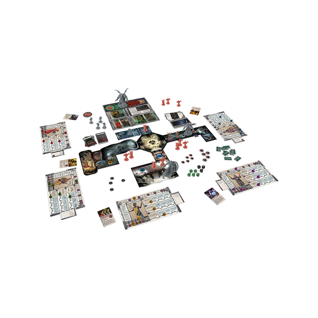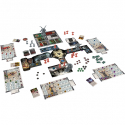 - 45 Figurines en plastique finement détaillées, - 1 Livret de Règles,- 17 Tuiles Recto Verso,- 1 Plateau d’Histoire,- 10 Fiches d’Investigateur,- 186 Cartes,- 8 Dés Spéciaux,- 5 Socles de Couleur,- 30 Marqueurs en plastique,- 147 Pions.
