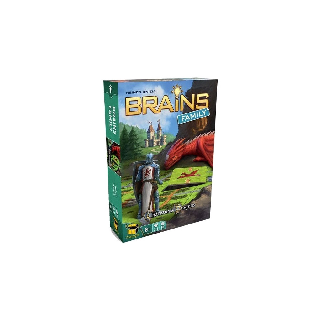 La série de casse-tête solitaire Brains s’agrandit avec Brains Family, le nouveau puzzle de Reiner Knizia. Affrontez-vous jusqu’à 4 chevaliers ! Découvrez à chaque nouvelle partie l'emplacement des dragons et des châteaux, puis précipitez-vous pour construire le chemin qui vous permettra d’être le premier chevalier à visiter tous les châteaux. Mais attention, si vous parvenez à triompher de cette première épreuve, vous devrez affronter le dragon à chaque tour suivant !