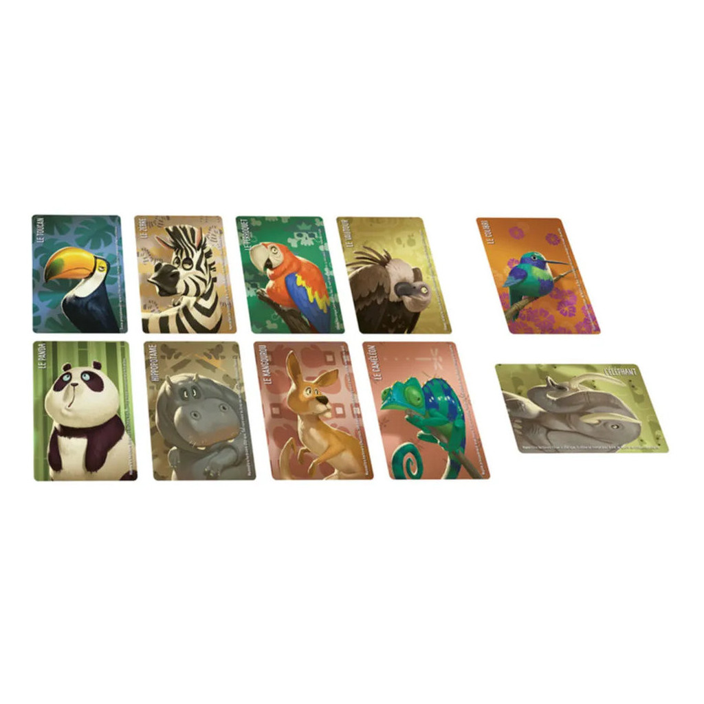 Vous avez 5 tours pour démasquer l'animal secret. Si vous l’éliminez par erreur vous avez tous perdu ! Serez-vous sur la même longueur d’onde que le joueur qui donne les indices sans dire un mot ?Similo Animaux sauvages, un jeu de déduction coopératif